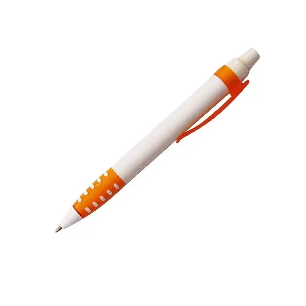 Bolígrafo retractil cuerpo blanco clip y detalles en color.